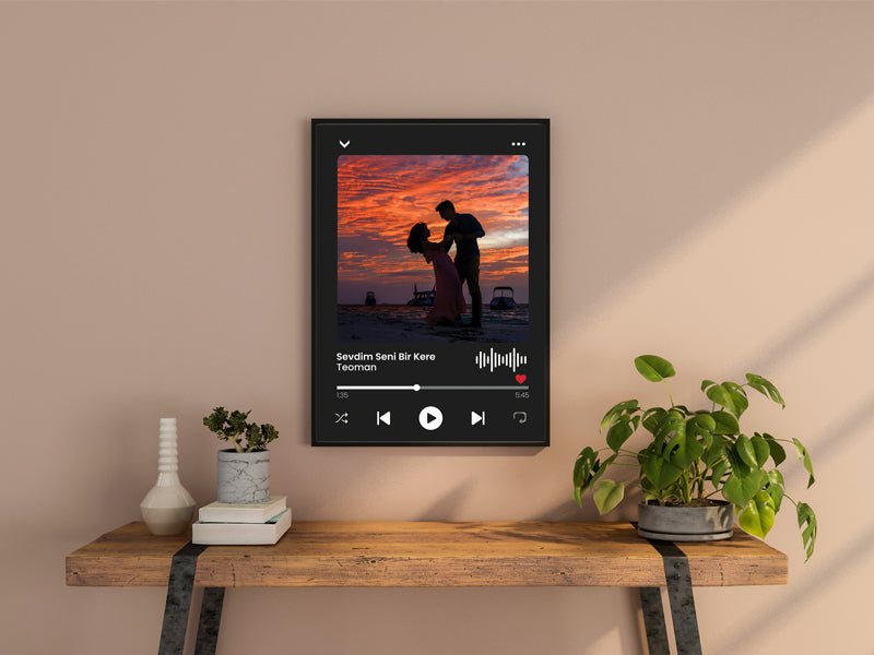 Müzik tutkunları için özel olarak tasarlanan kişiselleştirilebilir Spotify tablosu, en sevdiğiniz şarkıyı ölümsüzleştiriyor! Şarkı adı, sanatçı ve albüm bilgileriyle birlikte QR kod ekleyerek doğrudan Spotify’da dinleyebilirsiniz. Şık ve modern tasarımıyla evinizin veya ofisinizin dekoruna mükemmel uyum sağlar. Sevdiklerinize anlamlı ve özel bir hediye vermek için harika bir seçenek! Yüksek kaliteli baskı ve dayanıklı malzemesi sayesinde uzun yıllar hatıra olarak saklanabilir. En sevdiğiniz şarkıyı unutulmaz bir sanat eserine dönüştürmek için hemen sipariş verin! 🎧💖